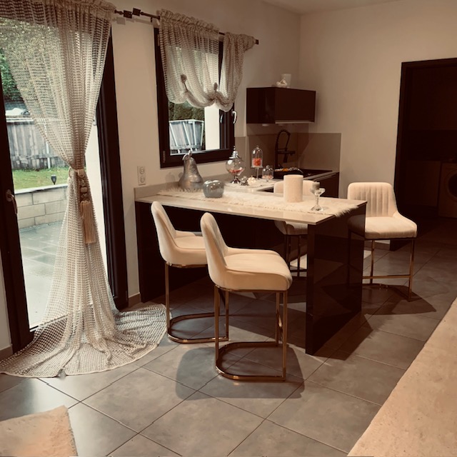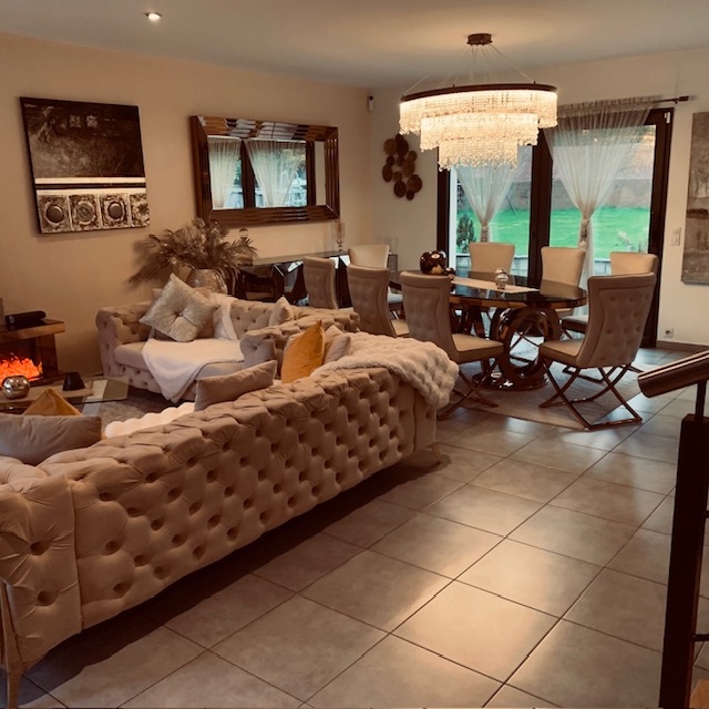 Les atouts de la maison BBC avec de grandes baies vitrées offrant un accès direct au jardin et à la terrasse.