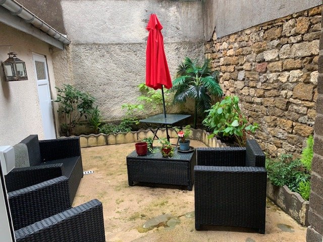 CONSISTANCE: Une entrée dégagement, une cuisine équipée ouverte sur le salon salon salle à manger avec un accès sur une cour d'environ 30m² avec une buanderie de 10m² et un cellier rangemnet de 10m², deux chambres, une salle de douche avec un cabinet de toilette.