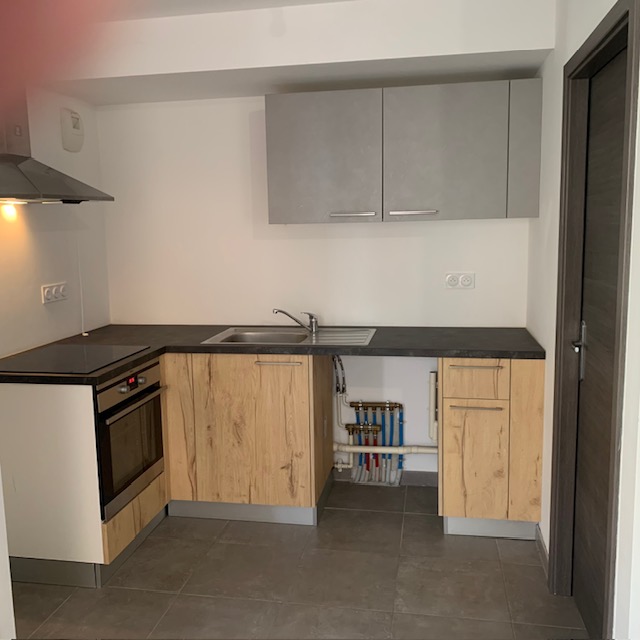 Une cuisine semi-équipée ouverte sur un lumineux salon-séjour, avec un accès direct à une agréable terrasse de 6.30m², parfaite pour les repas en extérieur.